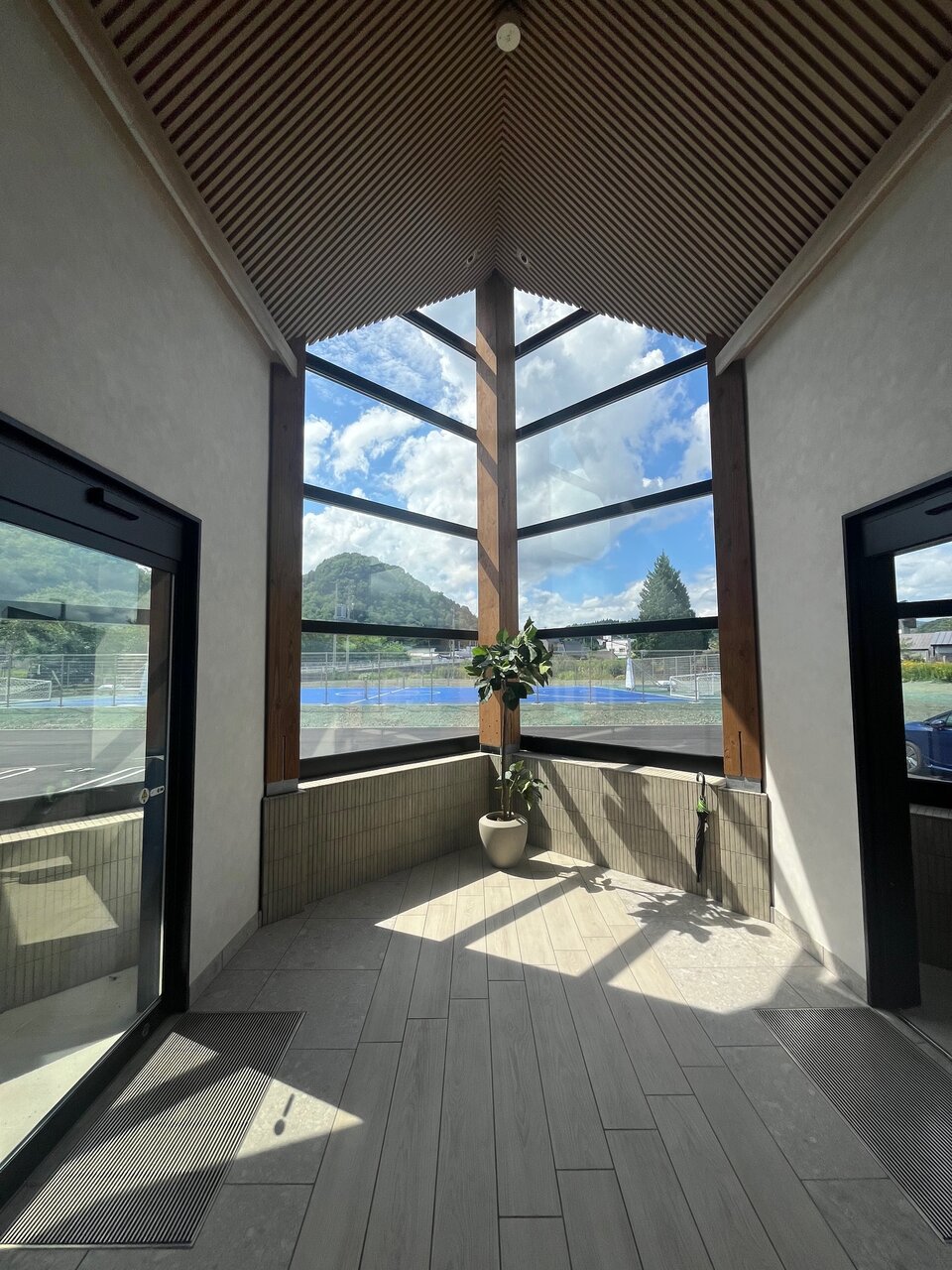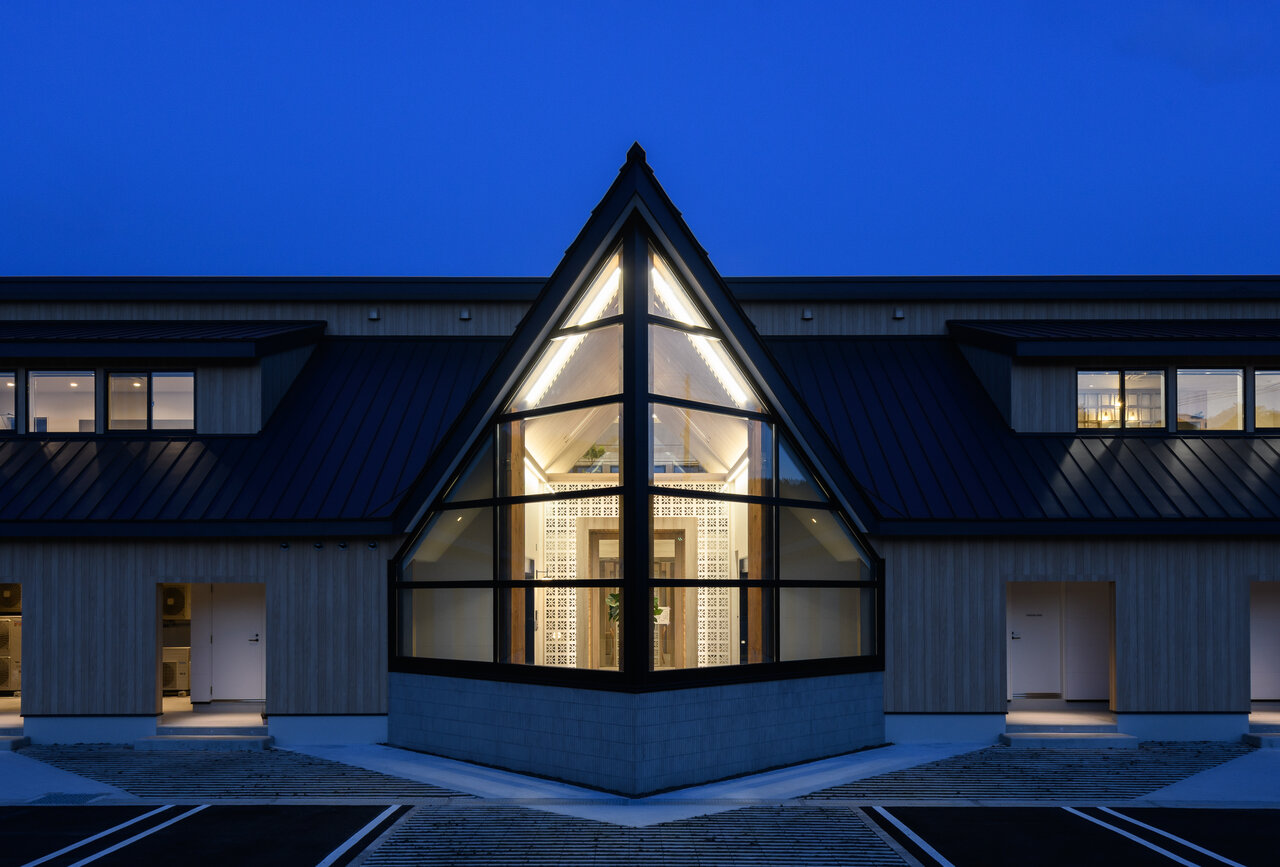 ・エントランスの象徴的な三角屋根デザイン